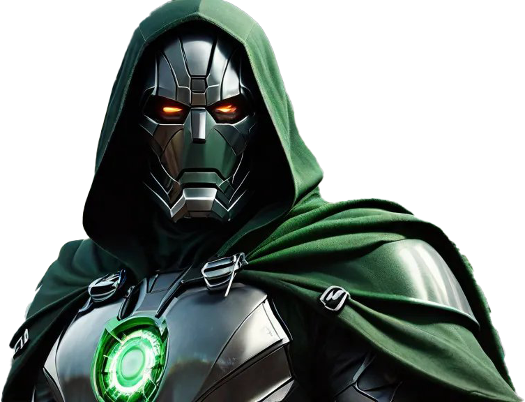 Doctor Doom Supervillain in Green Cloak and Mask PNG