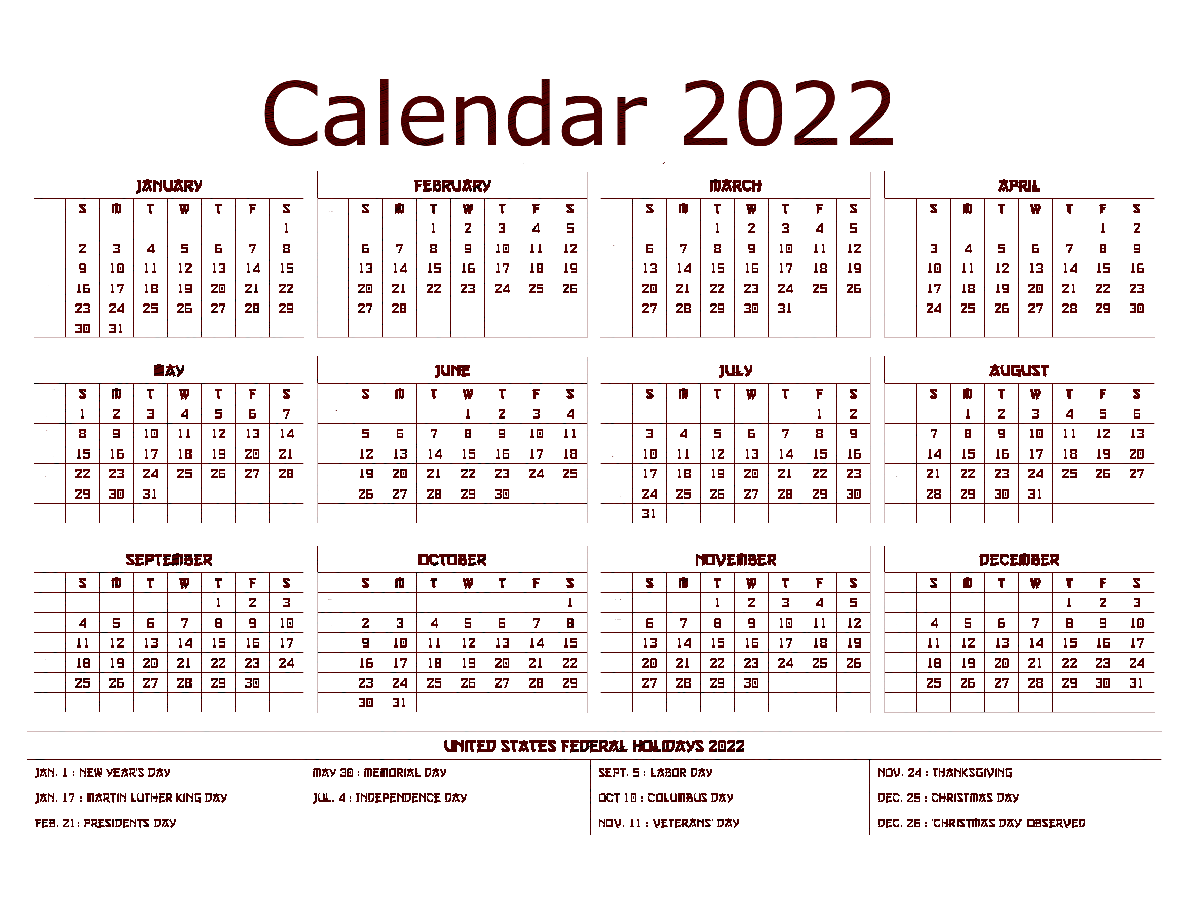 Year 2022 Calendar, Monthly Planner, Holiday Schedule, Event Tracker, Daily Organizer PNG